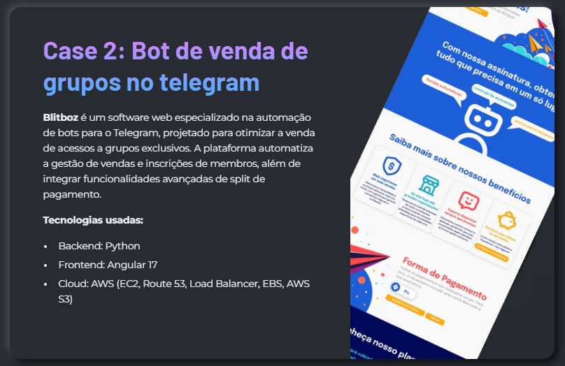 Infra escalável, monitoramento e deploy automatizado para ganhar velocidade e estabilidade.