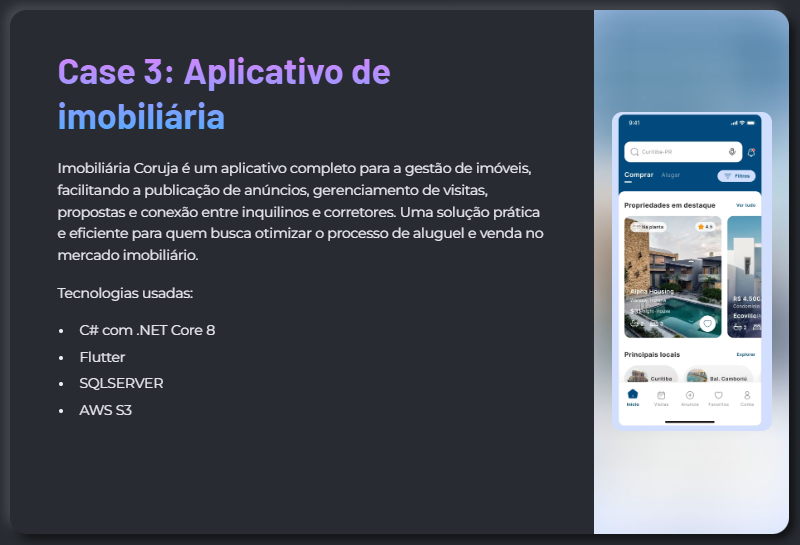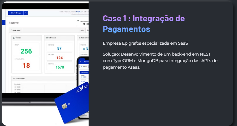 Produtos digitais completos: portal do cliente, área administrativa, app e pagamentos.